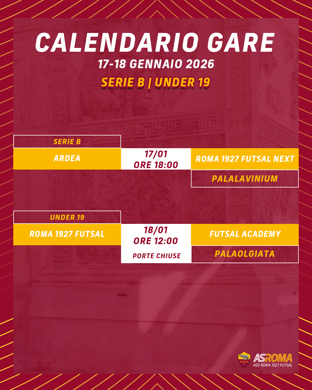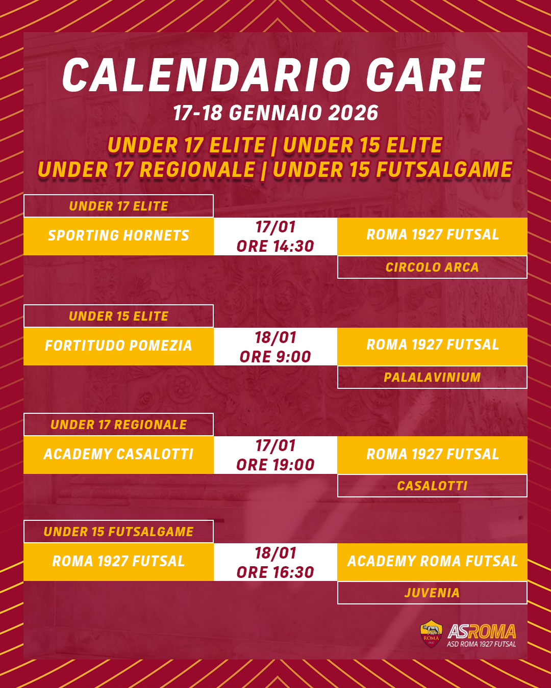 Dalla Roma 1927 Futsal Next all'Under 15 Futsalgame, il programma completo.