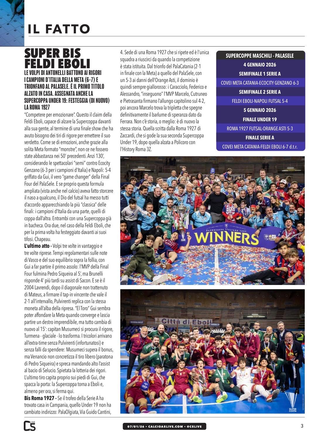 Le pagine del numero di maggio-giugno di Calcio a 5 Anteprima dedicate alla Roma 1927 Futsal 10/07/2024
