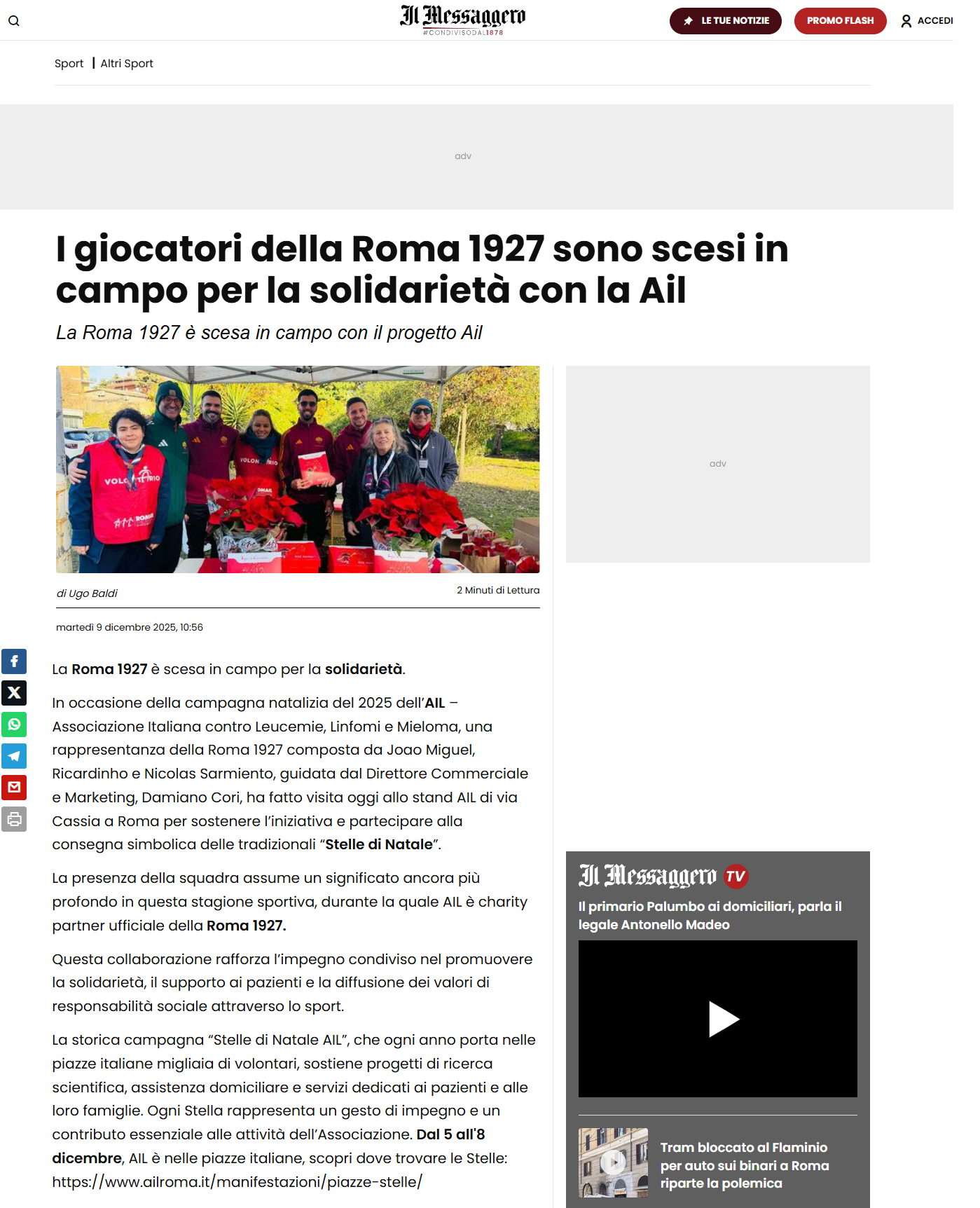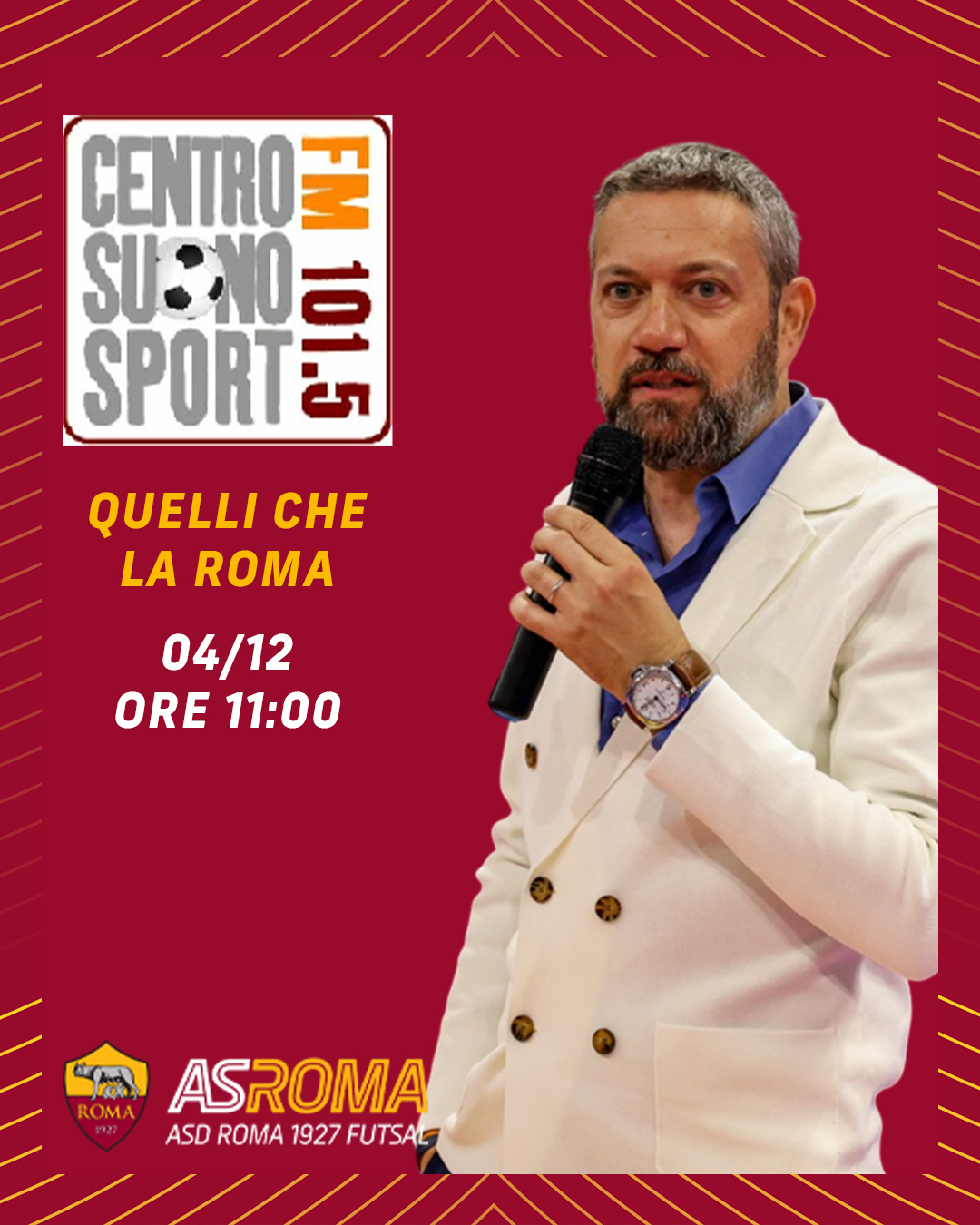Il Presidente Andrea Verde ospite di Quelli che la Roma su Centro Suono Sport 04/12/2025 vai all'articolo