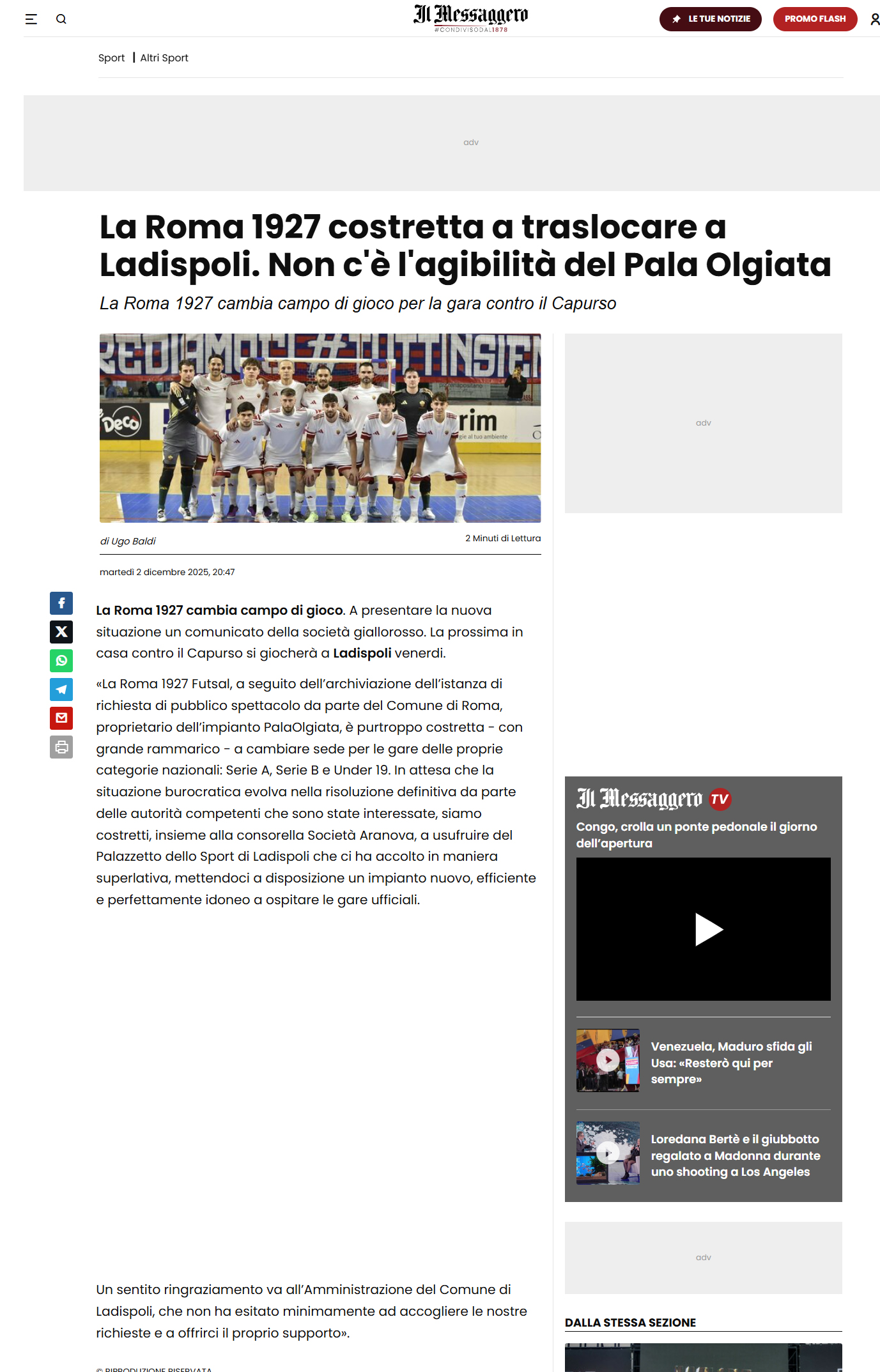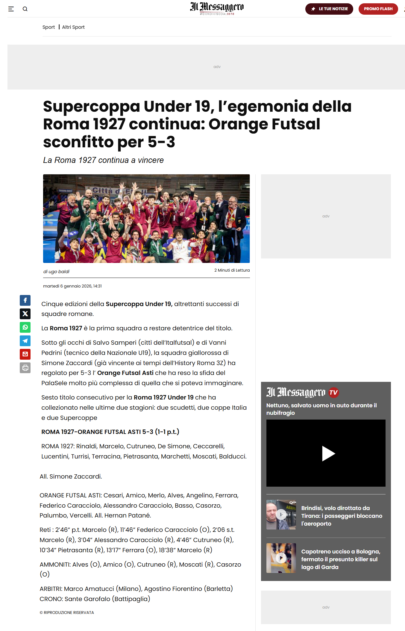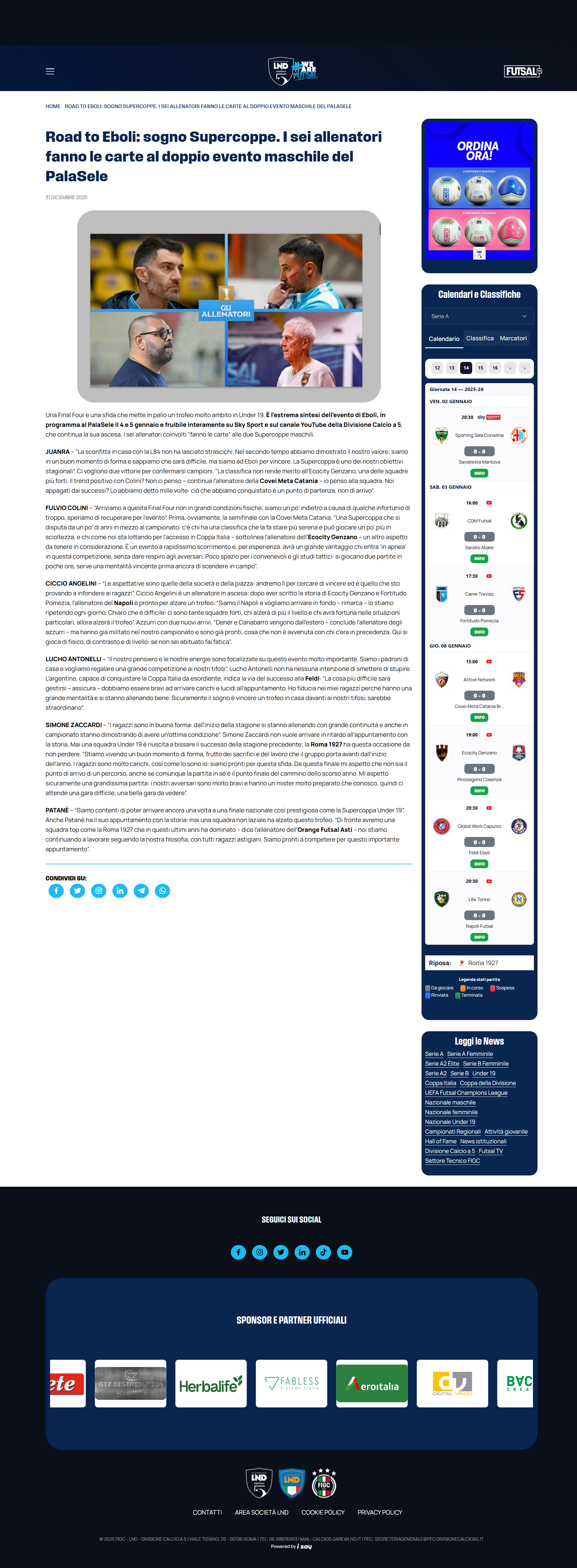 L'intervista al Direttore Generale Alessandro Angelucci su Calcio a 5 Anteprima 09/01/2025 vai all'articolo